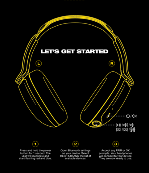 Another quick way to enter Pairing Mode when your headphones are off is to press and hold the power button for 3 seconds. Your HESH 540 ANC will power on and enter directly into Pairing Mode.