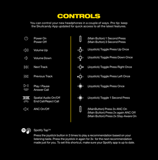 - This is done very easily through the Skullcandy app where you can customize your joystick controls to your liking.